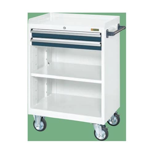 サカエ キャビネットワゴン(棚板付) W700×D480×H1025mm 48kg (本体)パールホワイト、(引出)ダークグレー CV−102TWD A0AW-3287
