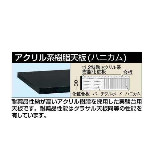 豊富なバリエーションのサカエ天板。耐薬品性が高いアクリル系樹脂天板です。 |