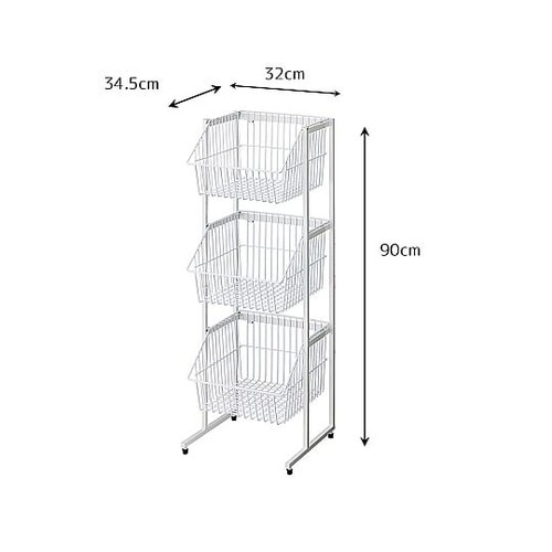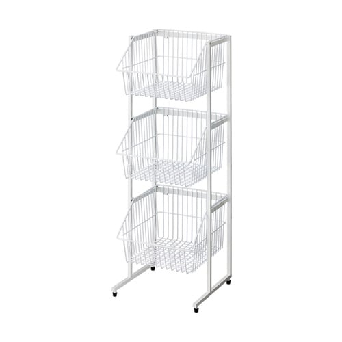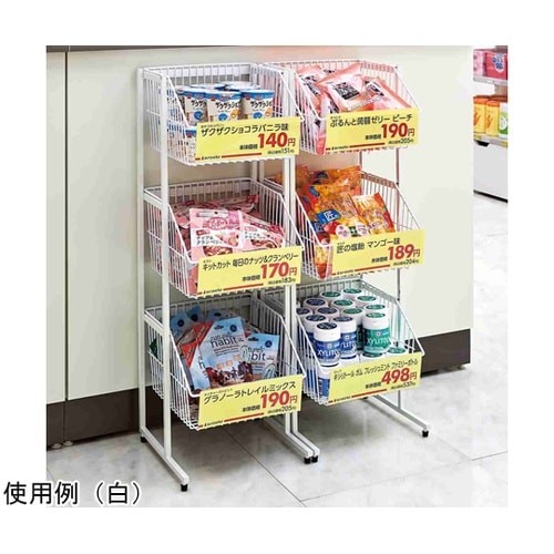 レジ前などの省スペースに適したスリムタイプのカゴスタンド什器です。カゴは取り外して置き売りでも使用できます。 |