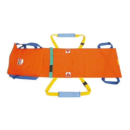 通常は2人で担ぎ、緊急時は1人で担げる担架です。コンパクトで軽くワンタッチで担架使用が可能です。 |
