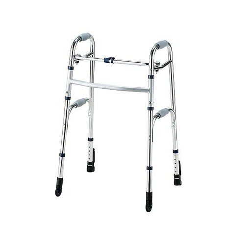 3インチのストレートキャスターにストッパーの付いた室内専用タイプです。少しずつゆっくり歩行する方におすすめです。プッシュボタンで簡単に折りたたみができます。 |