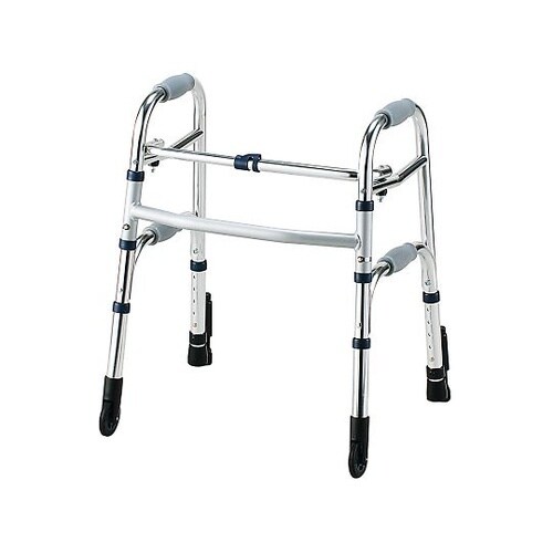 3インチのストレートキャスターにストッパーの付いた室内専用タイプです。少しずつゆっくり歩行する方におすすめです。プッシュボタンで簡単に折りたたみができます。