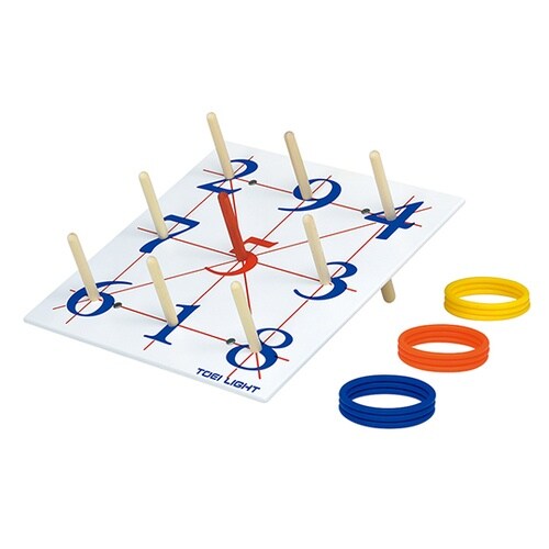 ボード裏の脚部の取り付け方で、高さ・角度が設定できます。軽くて投げやすい樹脂製リングです。 |