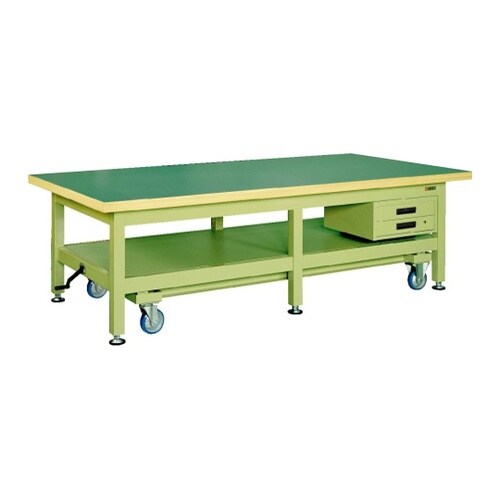 サカエ 超重量作業台KWCタイプ ハンドル昇降移動式 キャスター130φ KWCF−2412B A0AW-6381