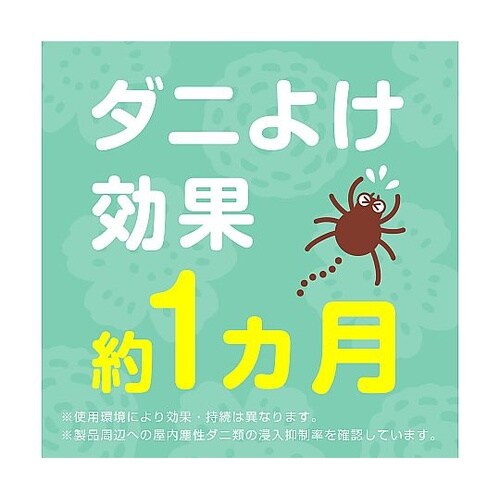植物生まれ(天然精油配合)の守るチカラ植物成分配合でダニよけ効果が約1ヶ月間持続します。(使用環境により効果・持続は異なります。製品周辺への屋内塵性ダニ類の侵入抑制率を確認しています。 |