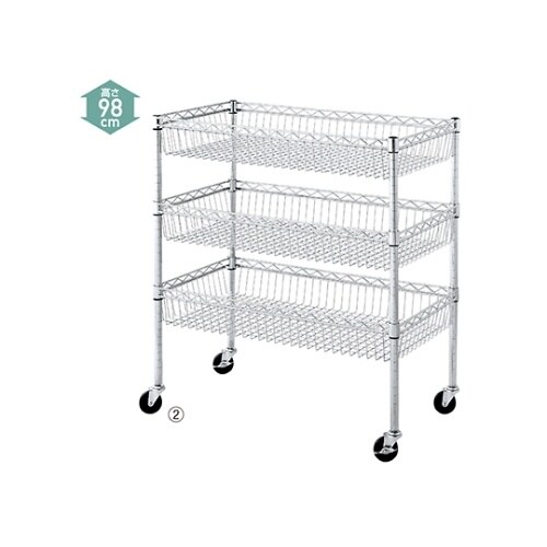 シェルフワゴンH98cm 3段展開 W90.7×D45.7cm 61−753−55−2