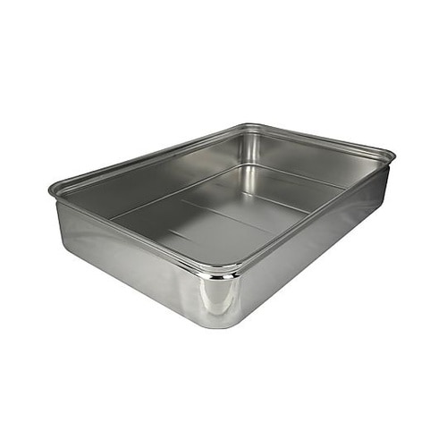 食品工場、給食センターなどで食材や料理の運搬、保管に広く使われているバットです。食材や料理を入れた状態で積み重ねができます。可動取手付です。耐久性と耐食性に優れたステンレス製です。 |