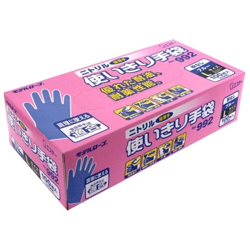 ニトリル使いきり手袋 ブルー L 粉なし 100枚×12箱入 No.992