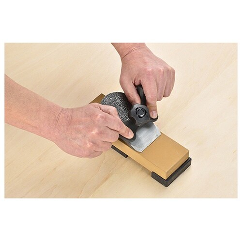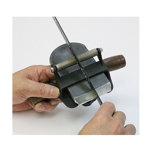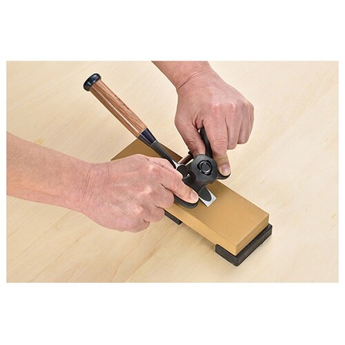 鉋刃やノミを固定し一定の角度で研ぐことができるローラー付の刃物研ぎガイドです。ハンドル付で安全に作業がおこなえます。特殊刃物押さえ金具で、刃物をしっかり固定できます。刃幅70mmまで対応します。 |