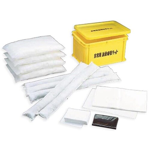 オイル・水・溶剤を吸収できる緊急事態対応キットです。<用途>オイル・水・溶剤用。非常時の油漏れの吸収に。