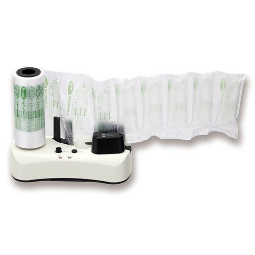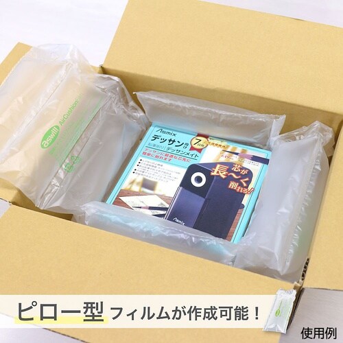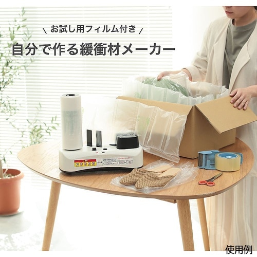 エアクッションメーカー本体に50mのロールフィルム(80×200mm)が付属します。別売りエアクッションフィルムは3サイズから選べます。 |