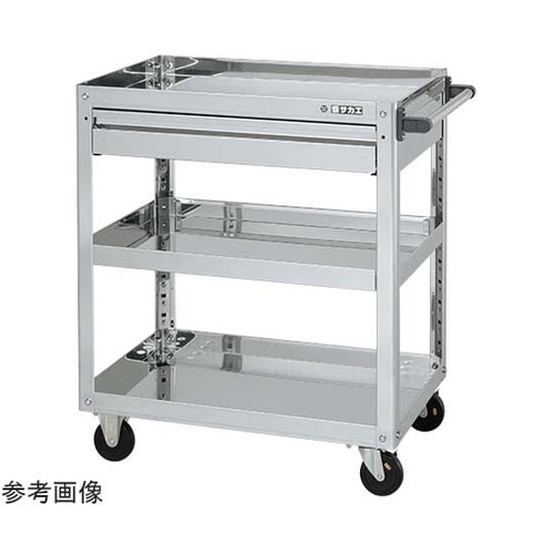 支柱突き合せ方式を採用した非常に堅牢なワゴンです。支柱構造は溶接レスにより美観向上。棚板は皿型・フラット型変更可能です。引出しが付いていますので、工具などの管理・収納に適しています。 |