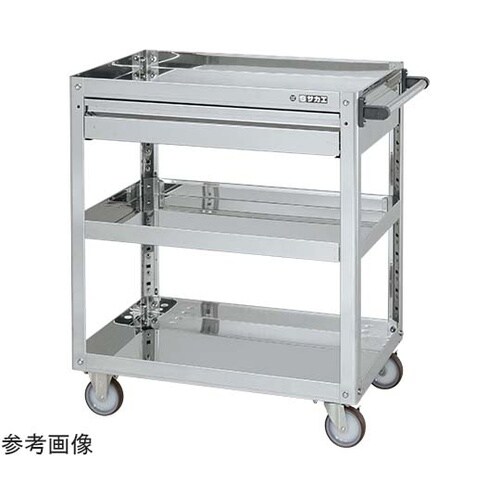 ステンレススーパーワゴン(SUS430/プレート式ナイロンウレタン車/スチール金具仕様/引出付)W750×D500×H880mm SAP4−7583ANUJ