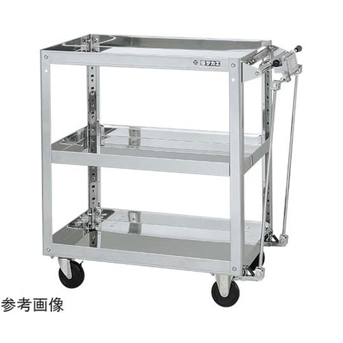 ステンレススーパーワゴン(SUS430/プレート式導電性ゴム車/スチール金具/ハンドブレーキ付)W750×D500×H880mm SAP4−7583HBDC