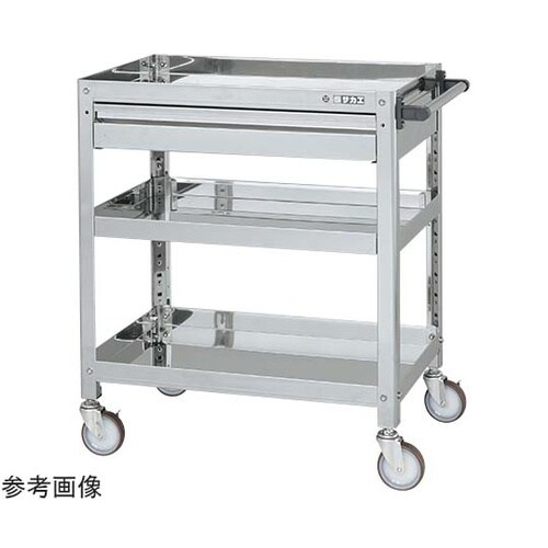 ステンレススーパーワゴン(SUS304/ねじ込み式ナイロンウレタン車/ステンレス金具仕様/引出付)W750×D500×H880mmSAS3−7583ASNU