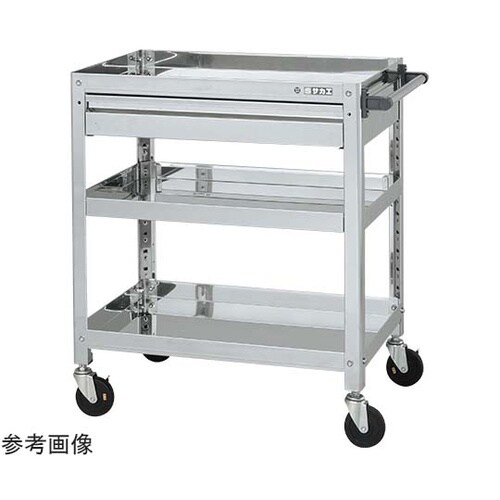 ステンレススーパーワゴン(SUS304/ねじ込み式導電性ゴム車/スチール金具仕様/引出付)W750×D500×H880mm SAS3−7583ADC