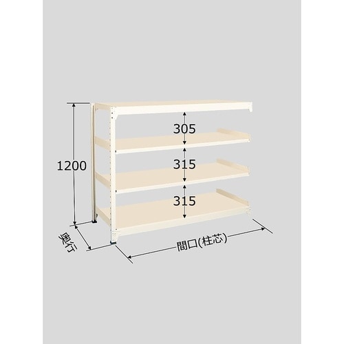 寸法:W1200×D600×H1200mm | 段数:4段 | 耐荷重(棚1段当り):150kg | 耐荷重(棚1連当り):750kg | 本体色:ア…