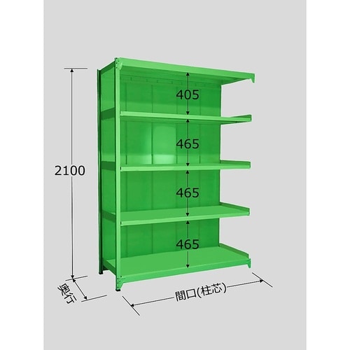 寸法:W900×D450×H2100mm | 段数:5段 | 耐荷重(棚1段当り):150kg | 耐荷重(棚1連当り):600kg | 本体色:グリ…