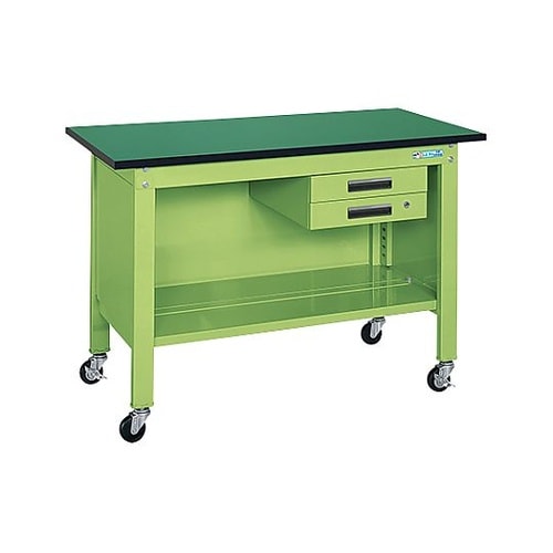 改正RoHS指令(RoHS2)における制限物質対応サカエリューム天板付作業台。キャスター付で簡単に移動ができます。 |