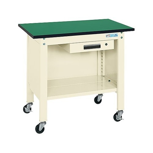 改正RoHS指令(RoHS2)における制限物質対応サカエリューム天板付作業台。キャスター付で簡単に移動ができます。 |