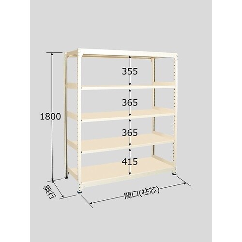 寸法:W900×D300×H1800mm | 段数:5段 | 耐荷重(棚1段当り):150kg | 耐荷重(棚1連当り):750kg | 本体色:アイ…