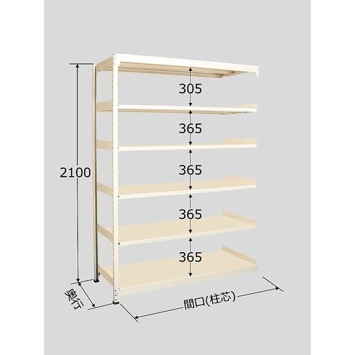 寸法:W900×D300×H2100mm | 段数:6段 | 耐荷重(棚1段当り):150kg | 耐荷重(棚1連当り):750kg | 本体色:アイ…