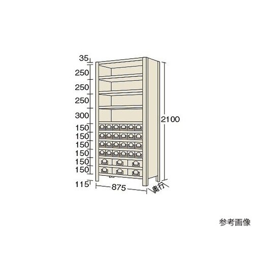 物品棚KW型 100kg/段 高さ2100mm 11段タイプ W875×D300×H2100mm KW2111−30