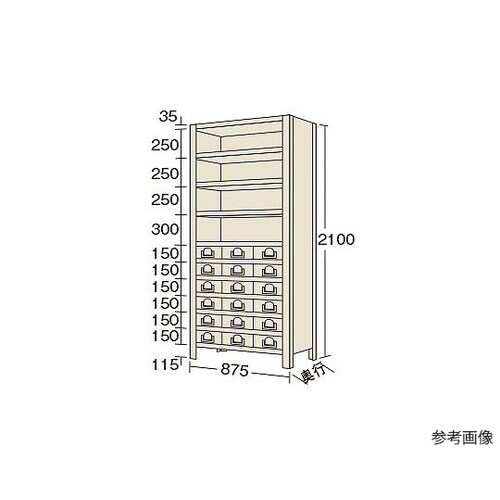 物品棚KW型 100kg/段 高さ2100mm 11段タイプ W875×D300×H2100mm KW2111−18