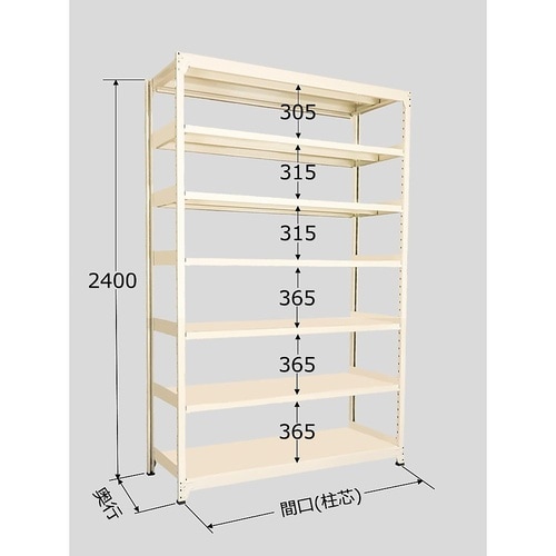 寸法:W1500×D600×H2400mm | 段数:7段 | 耐荷重(棚1段当り):150kg | 耐荷重(棚1連当り):750kg | 本体色:ア…