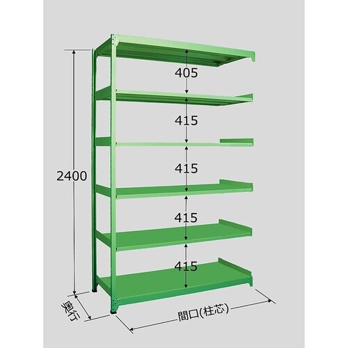 寸法:W900×D450×H2400mm | 段数:6段 | 耐荷重(棚1段当り):150kg | 耐荷重(棚1連当り):750kg | 本体色:グリ…