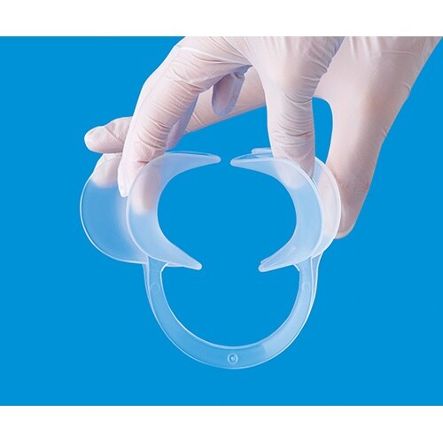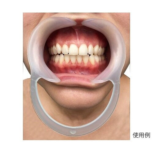 柔軟性があり、口腔内にスムーズに装着できるリトラクター。口腔内写真撮影時の開口に適しています。 |