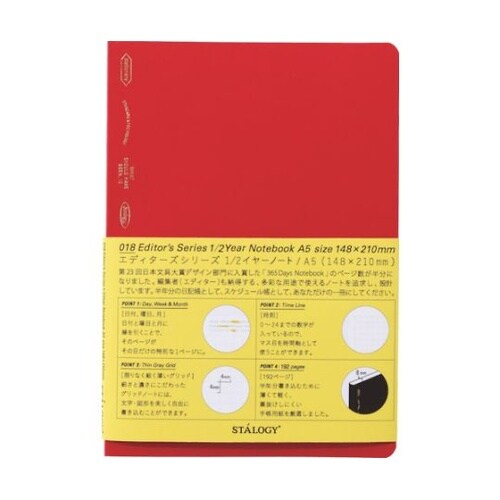 半年間、幅広い用途で使えます。時刻を表す数字、日付と曜日、そしてグリッドという最低限の要素だけを載せたシンプルなノートです。薄い紙を採用しているため、薄く、かさばらず持ち運べます。 |