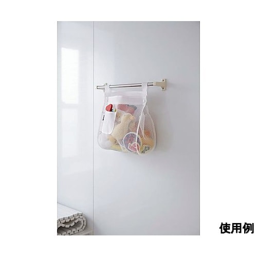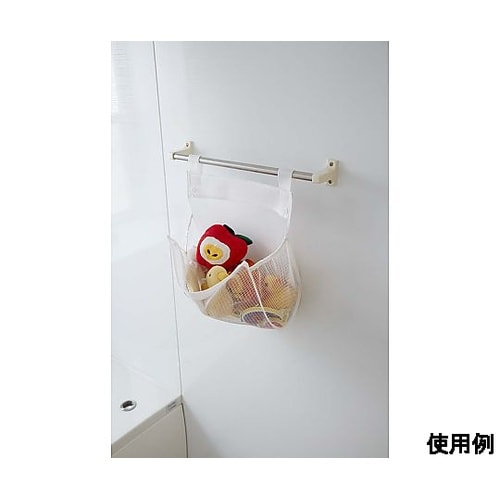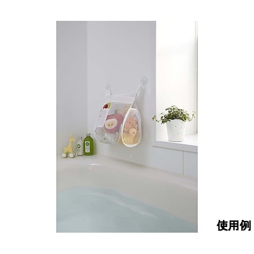 吸盤付吸盤またはφ40mmまでのパイプに直接取り付けできます。小物などの収納・整理に便利です。メッシュ素材の袋に入れてつるすことで、おもちゃの水切りができ、いつも清潔な状態を保てます。 |