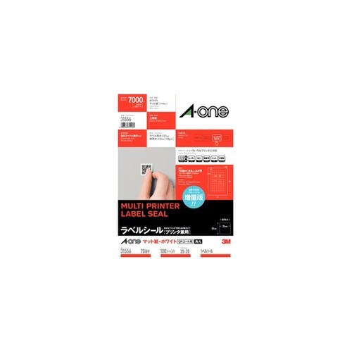 エーワン ラベルシール(プリンタ兼用) マット紙・ホワイト A4判 70面 四辺余白付 角丸 1冊(100シート入) 31556 A0AX-8045