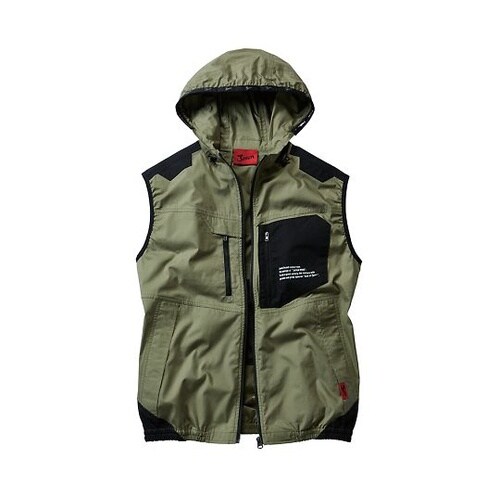 綿100%素材使用の空調服ベスト(フード付) カーキ EL 54110