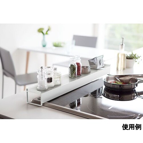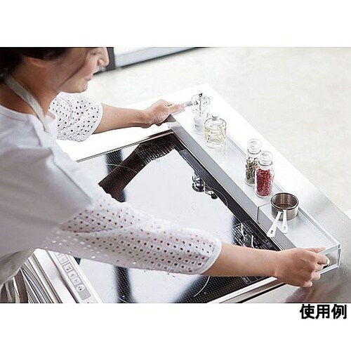 排気口カバーの高さ約1.5cm以下に対応スパイスや調味料などが置けるガード付きの棚で排気口上を有効活用!グリル使用時は後ろへずらすだけ。置くだけで飛び散る油や調理汚れをしっかりガードできます。 |