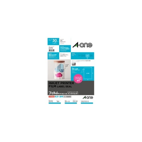 エーワン ラベルシール(インクジェット) 光沢フィルム・透明 A4 1面 ノーカット 1パック(30シート入) 28792 A0AX-8293