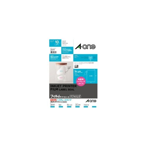 エーワン ラベルシール(インクジェット) 光沢フィルム・ホワイト ハイグレード A4判 ノーカット 1パック(10シート入) 28797 A0AX-8295