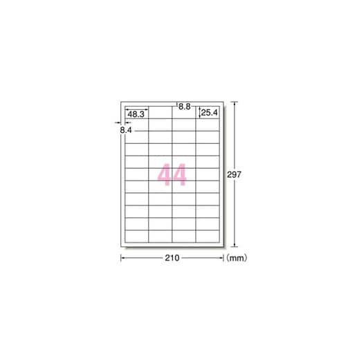 対応プリンタ:インクジェット(染料+顔料)、レーザー、コピー、熱転写、ドット | その他仕様:A4判 44面 四辺余白付 500シート | 一片サイズ…
