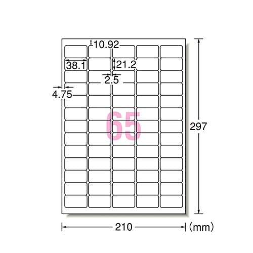 プリンタ用ラベル 65面 四辺余白付 角