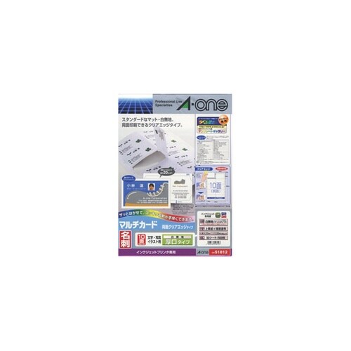 エーワン マルチカード インクジェットプリンタ専用紙 両面クリアエッジタイプ 白無地 厚口 A4判 10面 名刺サイズ 1パック(50シート入) 51812 A0AX-8378