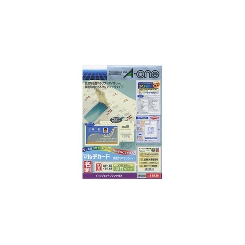 エーワン マルチカード インクジェットプリンタ専用紙 両面クリアエッジタイプ ソフトアイボリー 厚口 A4判 10面 名刺サイズ 1パック(50シート入) 51836 A0AX-8382