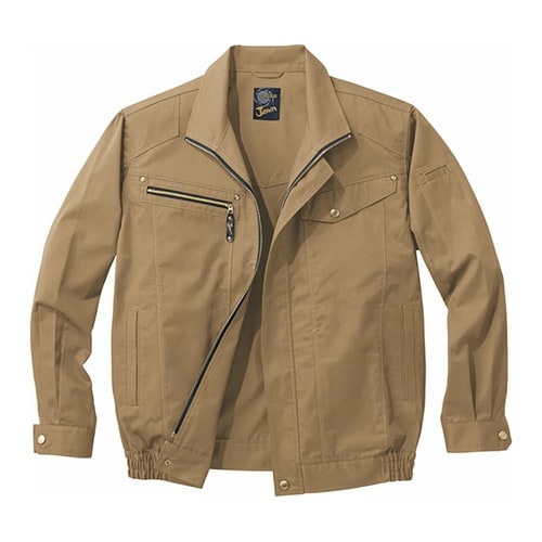 ゴールドのファスナーとボタンがインパクトを与える。Jawinの売れ筋商品 55500のデザインをベースにした空調服。 |