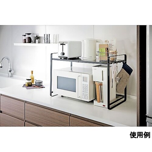 伸縮式シンプルで使いやすい約47.5ー75cmまで伸縮可能な電子レンジ収納ラック。 |