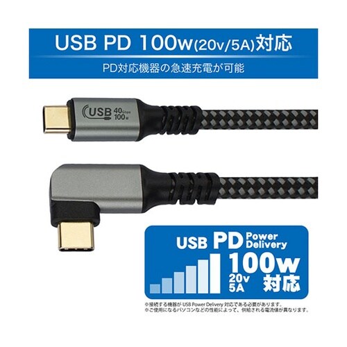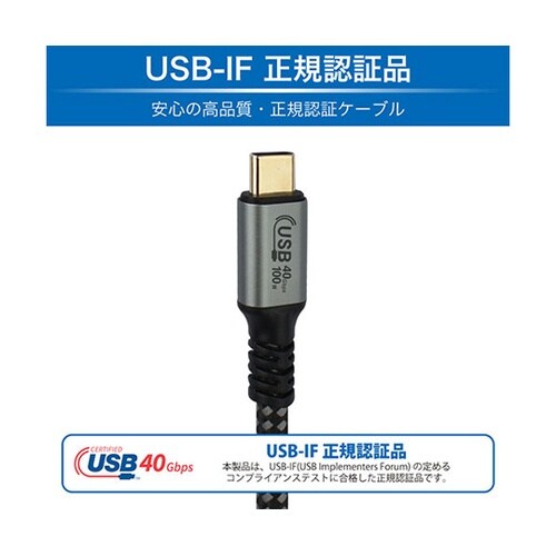 コネクタ形状:USB Type−C オス − USB Type−C オス | 転送:最大40Gbps対応 | 充電:最大PD100w(20v・5A)対…