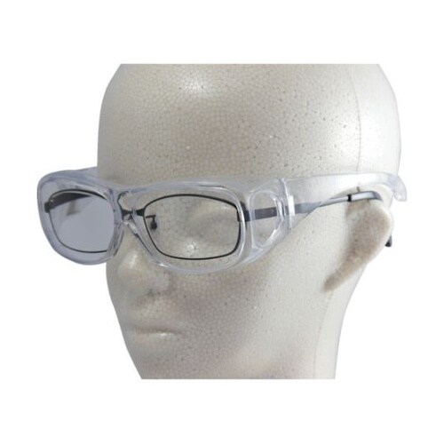 今お使いの眼鏡の上から掛けることができ、作業時に両手が使えて便利です。大きいフレームを使用しているのでフィット感も抜群です。両サイドに小窓がついており、視野が広々で見えやすいです。 |