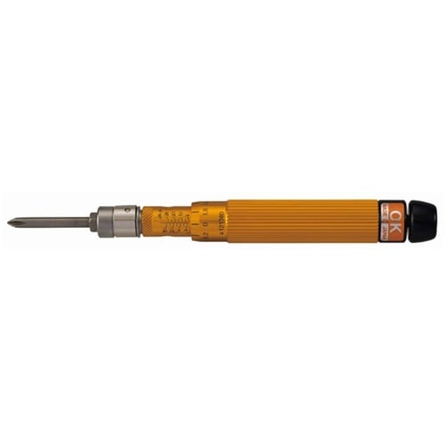 製品には簡易の検査成績書付校正証明書(書類宛名なし)が付属しております。空転式。トグル式トルク検出機構で、精度、耐久性に優れています。設定トルクに達するとクリック感があり、正確な締付けができます。 |