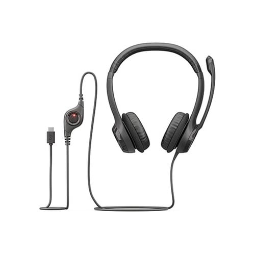 USB−C接続対応のUSBヘッドセット。ノイズキャンセリングマイク搭載でクリアな音声通話が可能です。190cmのケーブル長があるため、デスクから離れた場所でも快適にご利用できます。 |