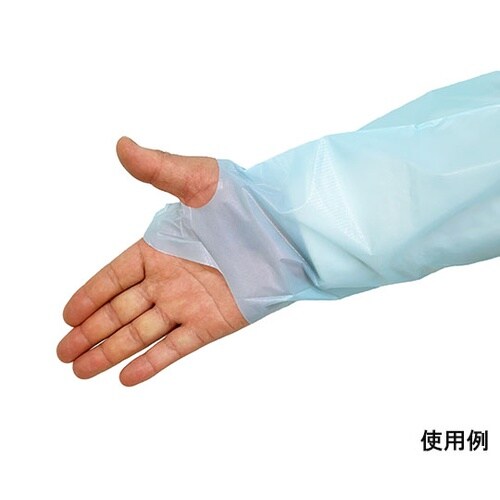 医療用ガウン米国規格 [ANSI/AAMI PB70 レベル4]に適合した製品です。指フックが袖のズレ上がりを防ぎます。 |
