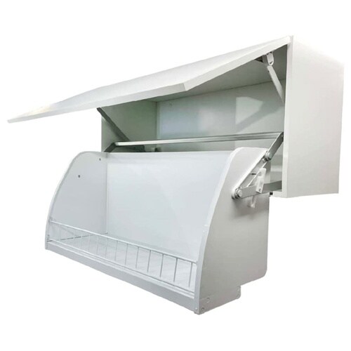 収納ラックと扉が連動しているため、収納ラックの取っ手を引くと同時に扉が開き、「出す→使う→戻す」の一連の流れをワンアクションで行うことができます。 |